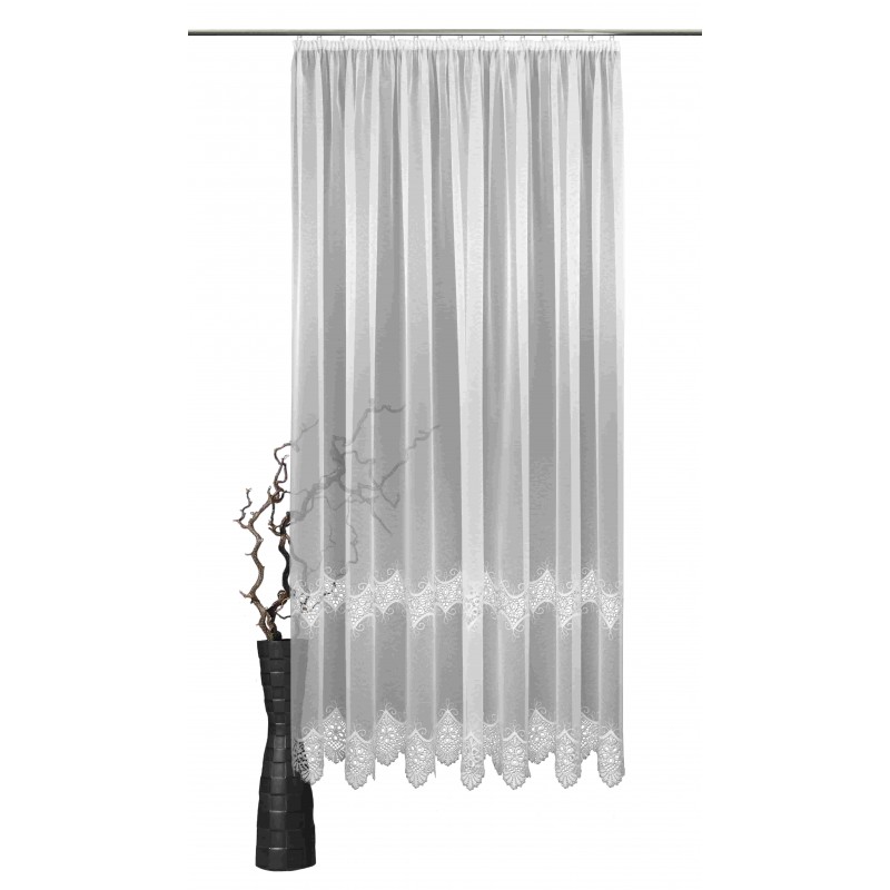 Die elegante Dreher-Sablé-Store-Gardine „Weimar“ nach Maß wird in unserer deutschen Konfektion individuell für Sie gefertigt. Mit ihrem halbtransparenten Stoff, dem eingearbeiteten Kräuselband (Universalband) und der dekorativen Makramee-Stickerei (Spitze) sorgt sie für ein stilvolles Ambiente in Ihren Räumen.